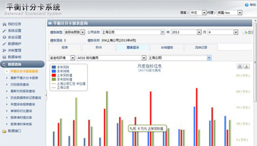 系統(tǒng)實現(xiàn)了基于平衡積分卡理念的公司戰(zhàn)略層管理,將組織的戰(zhàn)略落實為可操作的衡量指標和目標值,并在系統(tǒng)中進行預測、填報、審批和數(shù)據(jù)分析,用來與預期管理目標進行比對,以便于獲取真實的目標數(shù)據(jù)值來調節(jié)公司的戰(zhàn)略。