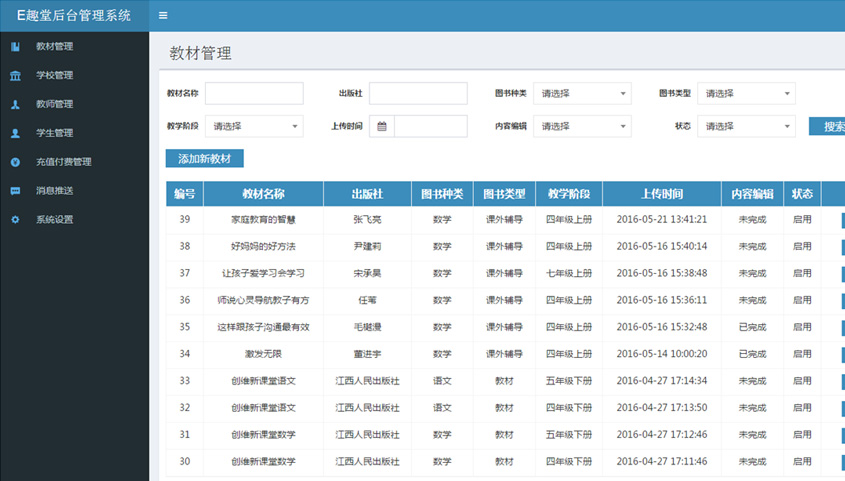 - 教材管理 管理平臺(tái)教材信息,采用圖片掃描、上傳、編輯對(duì)書(shū)本進(jìn)行錄入